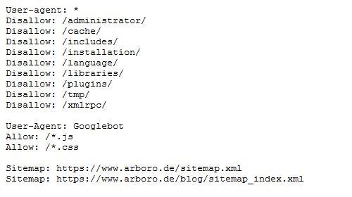 Such a file always consists of two parts. The first part addresses the user-agent. Then the command comes with the instruction "allow" or "disallow" along with the directory that should be excluded from or read by the bots.