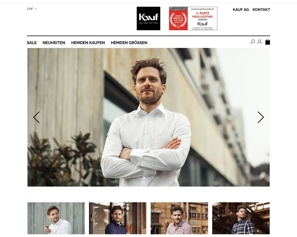 The company philosophy is always linked with the idea of producing high-quality men's shirts while staying up-to-date. Today, this also includes an online shop for customers, where business and leisure shirts can be easily and quickly ordered to their homes. Serious and yet with a certain something, the Swiss love the shirts from kauf.ch and look forward to seasonal collections. The Swiss premium shirts of the Jacob Kauf line, which are 100% Swiss Made from thread to button, are also very popular and meet the high demand for quality and sustainability with tradition, philosophy, and a love for men's shirts.